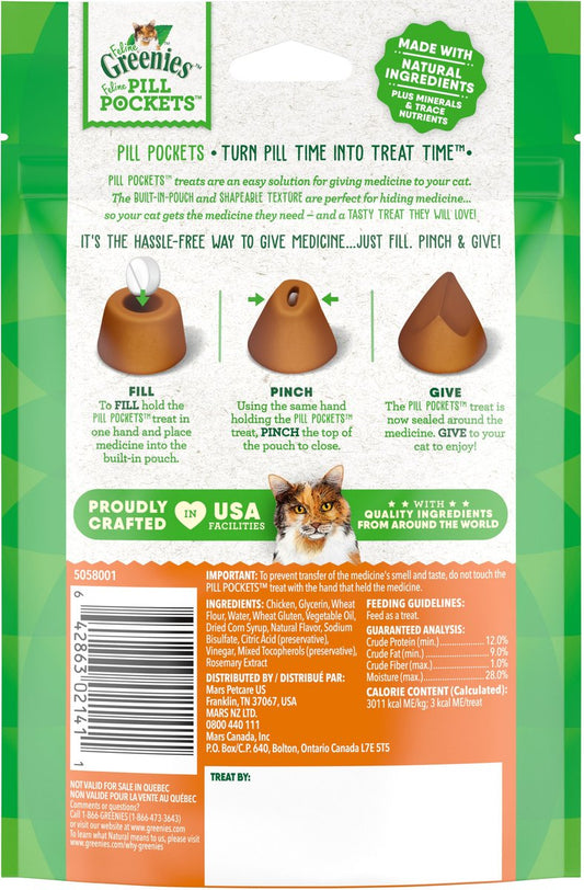 Greenies Pill Pockets Feline Chicken Flavor Natural Soft Adult Cat Treats