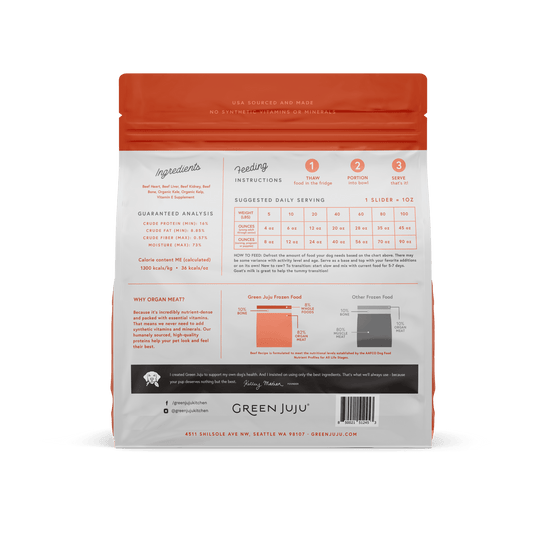 Green Juju Dog Frozen Beef Patties and Sliders