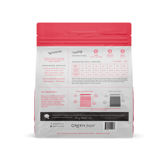 Green Juju Dog Frozen Pork Patties and Sliders