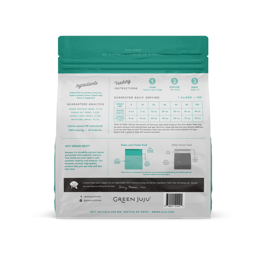Green Juju Dog Frozen Rabbit Patties and Sliders