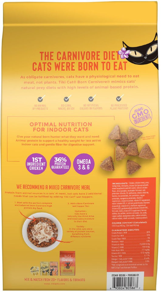Tiki Cat Born Carnivore Grain Free Indoor Health Non-GMO Chicken and Turkey Dry Food