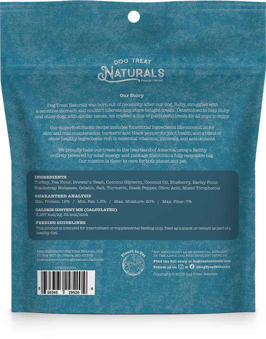 Dog Treat Naturals Superfood Sticks Turkey & Blueberry Dog Treats