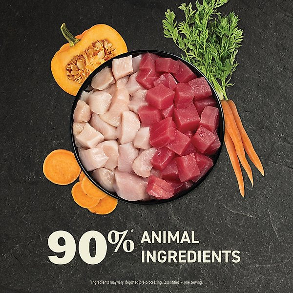 Fish bone broth, tuna, sweet potato, tapioca starch, guar gum, pumpkin, vitamin E supplement.
