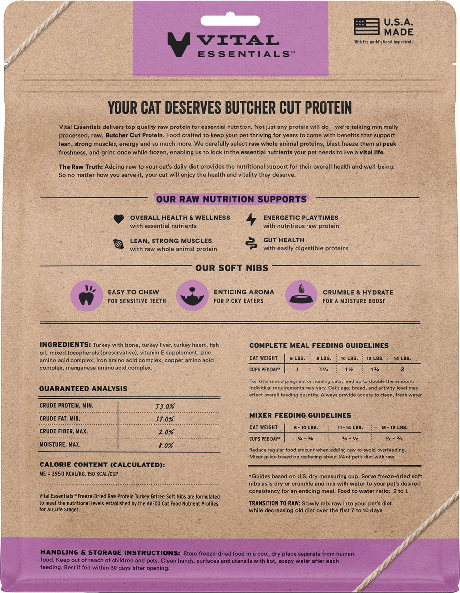 - These freeze-dried soft nibs are packed with extra protein from premium, butcher-cut turkey and offer complete and balanced nutrition for your cat.