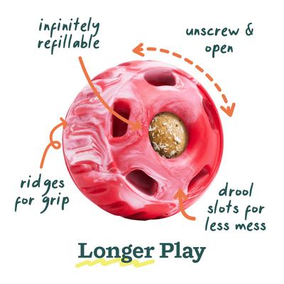 - Easy to fill and clean, this dog enrichment toy eliminates the mess and hassle of traditional treat dispensers.